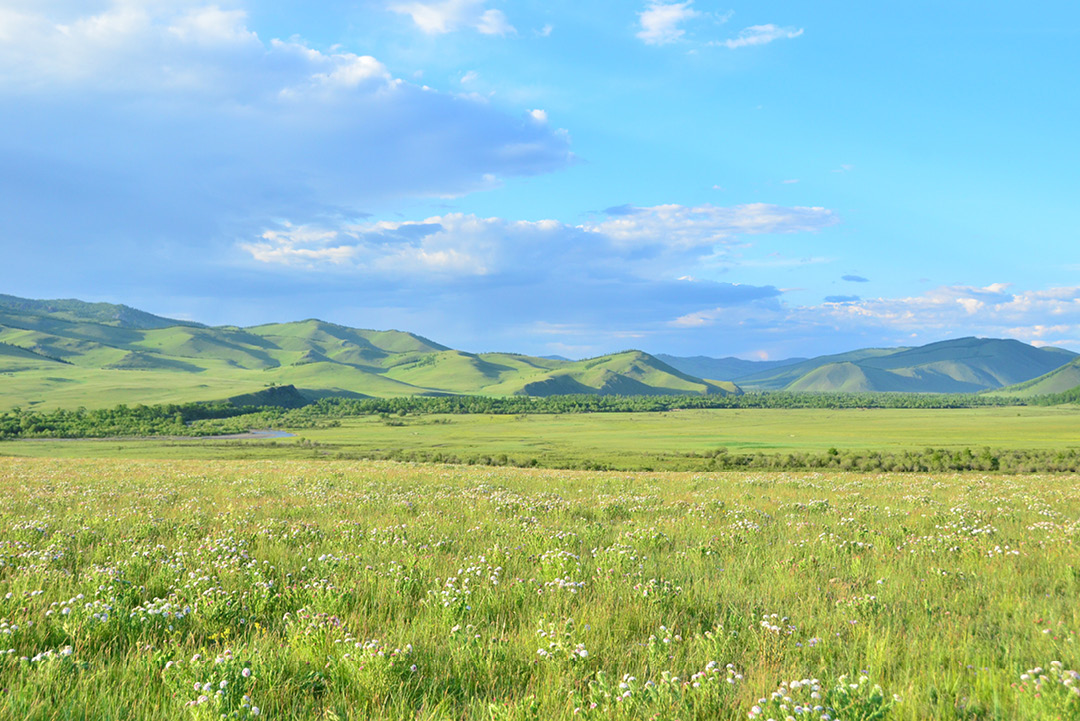 在北方,我们的友邻蒙古国每年夏天将迎来一年一度最美的季节,一望无际的大草原魔法般地变成了花的海洋,清澈的图拉河在附近蜿蜒流淌,一路穿过树林、奔向远山,洁白的蒙古包和成群的牛羊在辽阔的草原上闪闪发光。