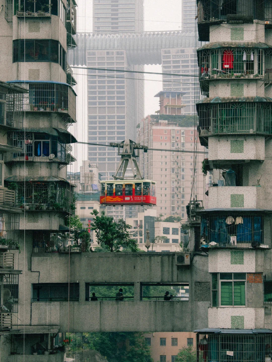 走进吊在几根如小臂般粗细的钢缆上的铁箱子,心开始在长江的上空漂来漂去。行走在都市水泥森林里,许久没有抬头望天了。对岸是重庆摩肩接踵的高楼,映衬着全国最大、最古老的会馆群落。横过江面之后,都市楼宇扑面而来,那些在记忆中藏得最深的七八十年代的老房子,在脚下倔强地站立着。筒子楼群进进出出的年迈老人,被年岁磨平的石阶和屋檐长着杂草的瓦房,串联起关于这座山水城市的历史印记。